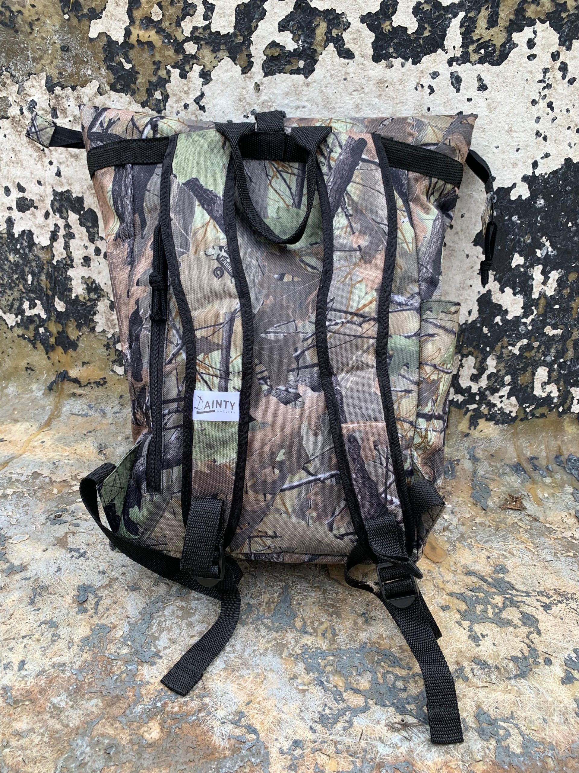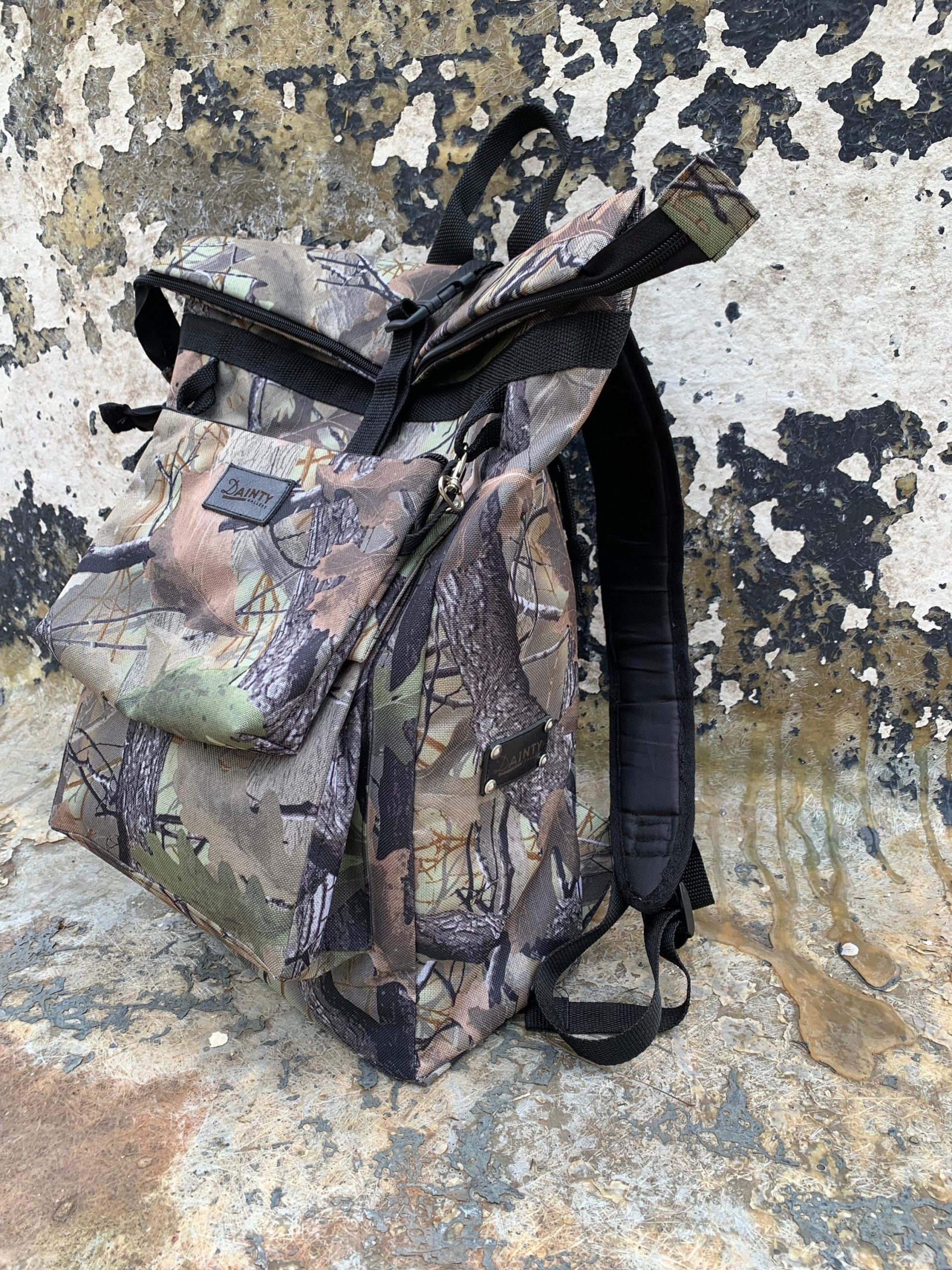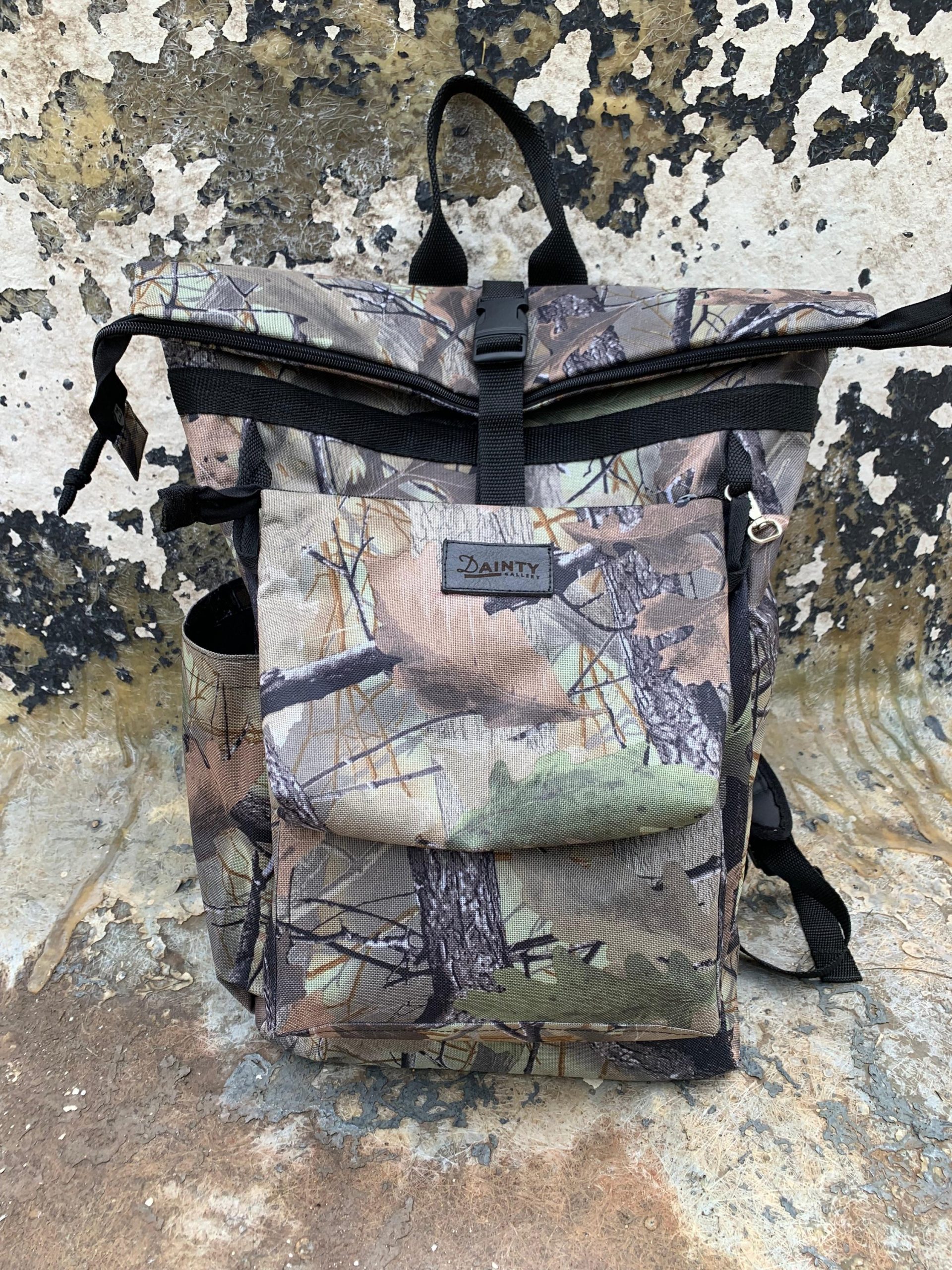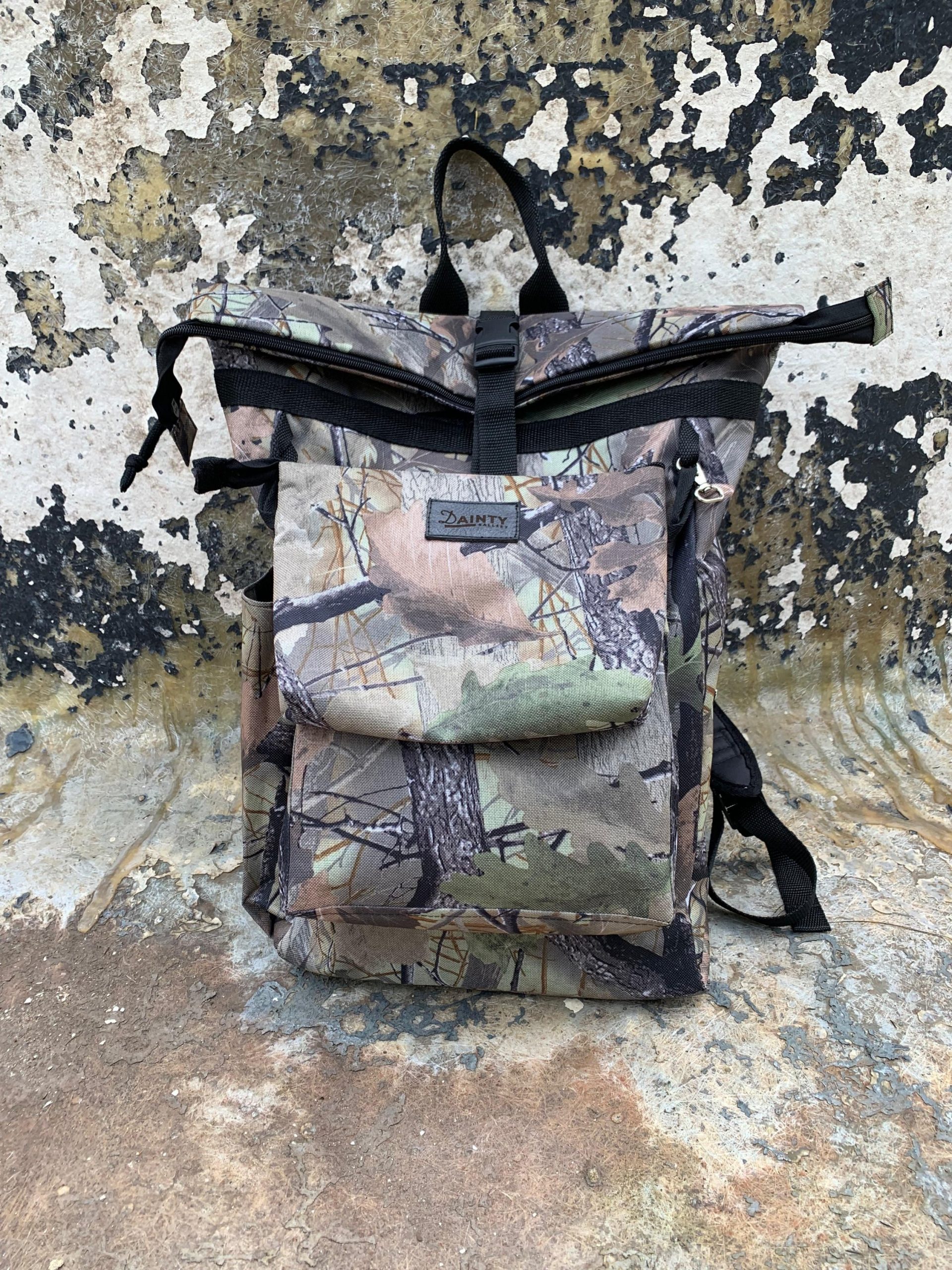 This Dainty Gallery Roll-Top Backpack is a perfect fusion of rugged outdoor style and modern functionality. Designed with a camouflage forest print, it captures an adventurous aesthetic while providing practical features for everyday use.