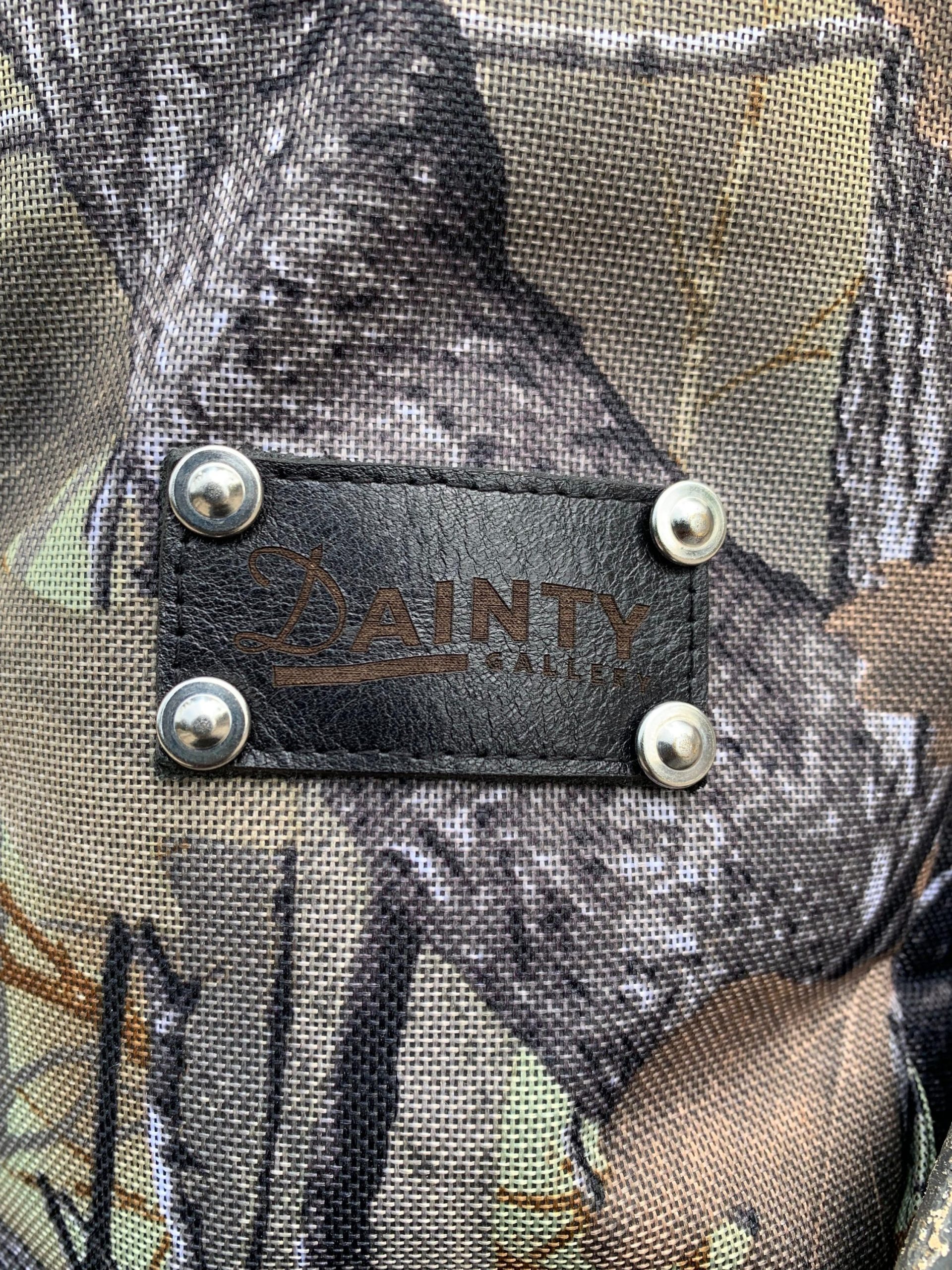 Details: Branded with a stitched “Dainty Gallery ” leather label, adding a premium touch to the utilitarian design.